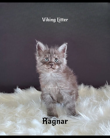 Ragnar is a stunning fellow. Black smoke kitten from our queen Willow and King Magnus. Ragnar is not as adventures as his brothers but will fit wonderful in most homes.